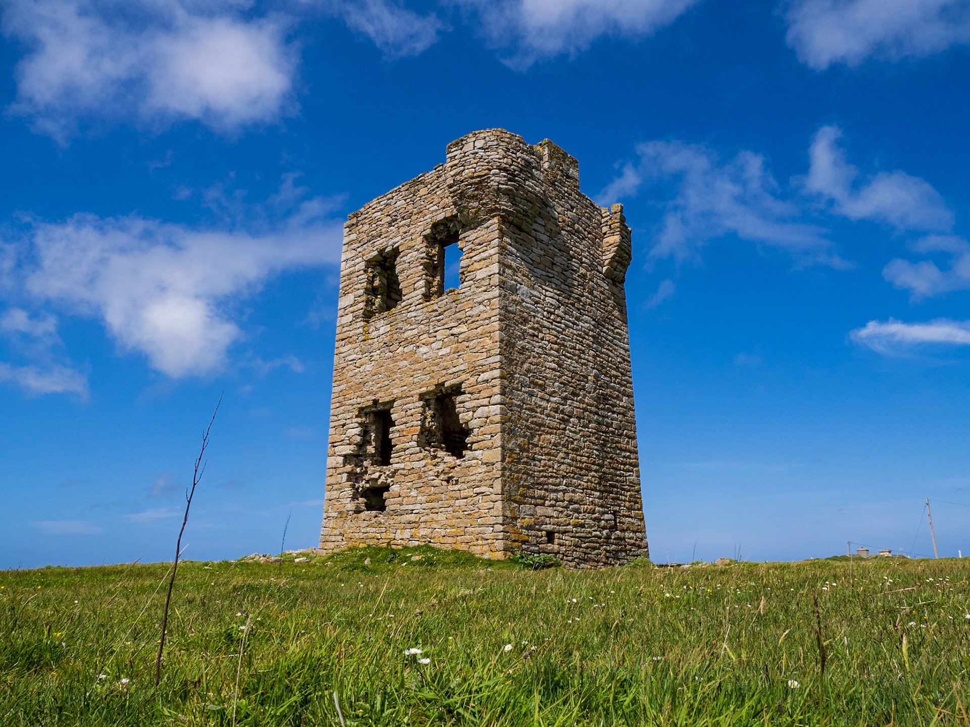 The Tower at Kildavnet, in the south-east corner of Achill Island, is a perfect example of a 15th century Irish tower house. The Gaelic Chiefs of the time copied a Norman design and constructed many such tower houses. The tower at Kildavnet is thought to have been constructed by the Clan O’Malley in about 1429, but is associated locally with a descendant of the original builders, Grace O’Malley or Granuaile.