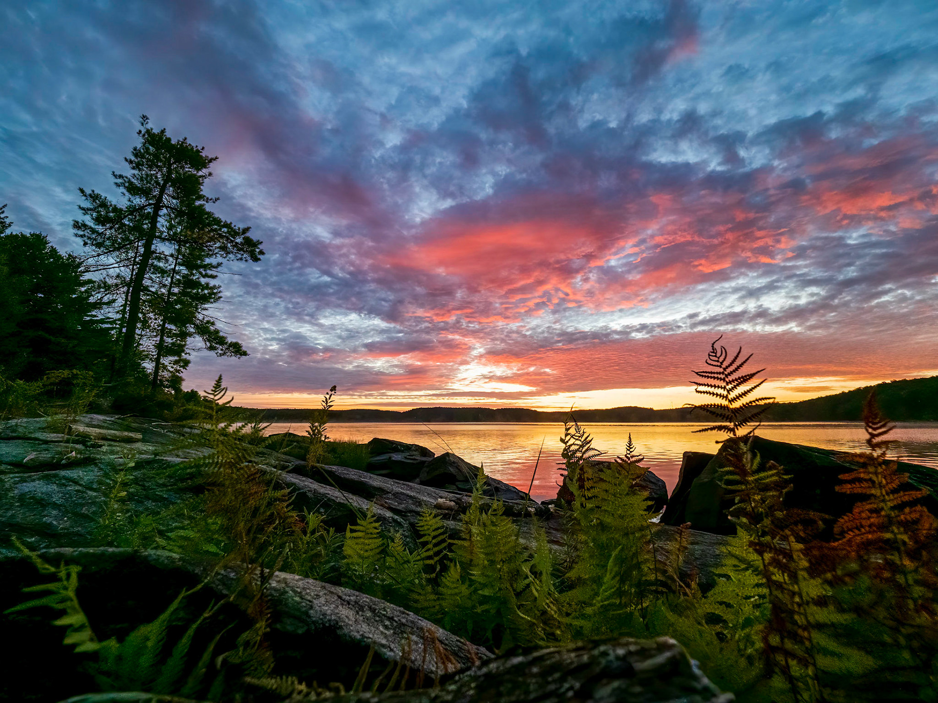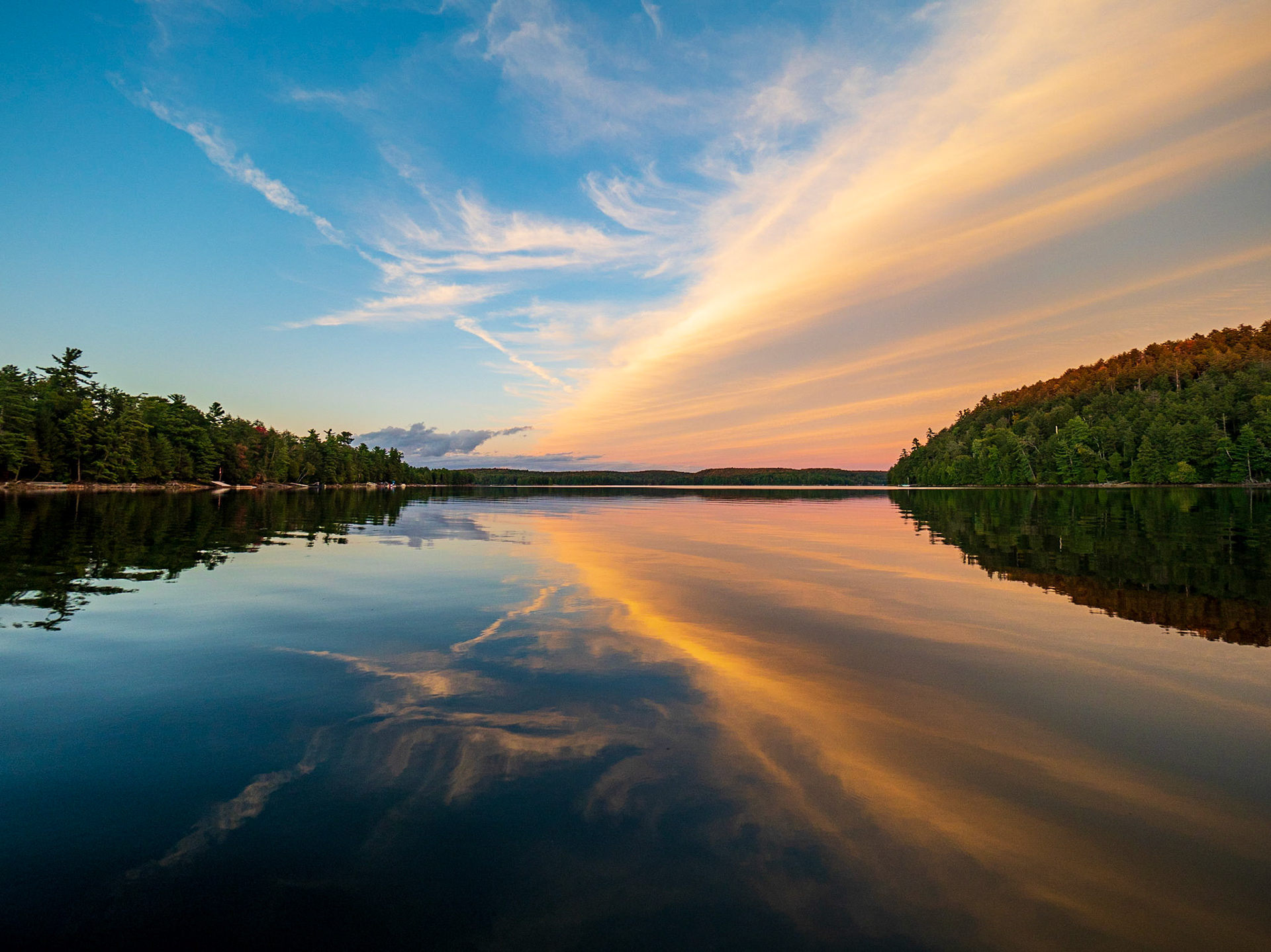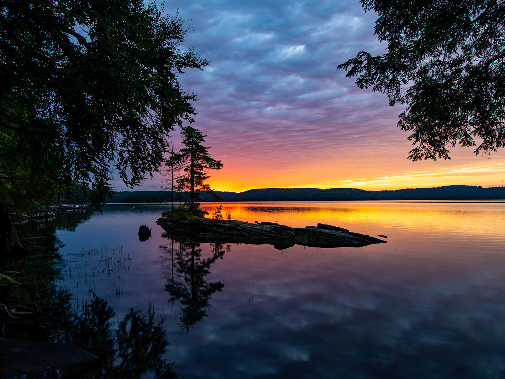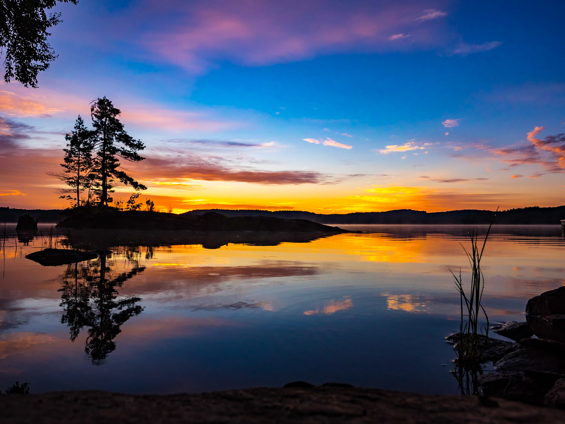 Tiffany sunset silhouette on Kennisis Lake, Haliburton, Ontario