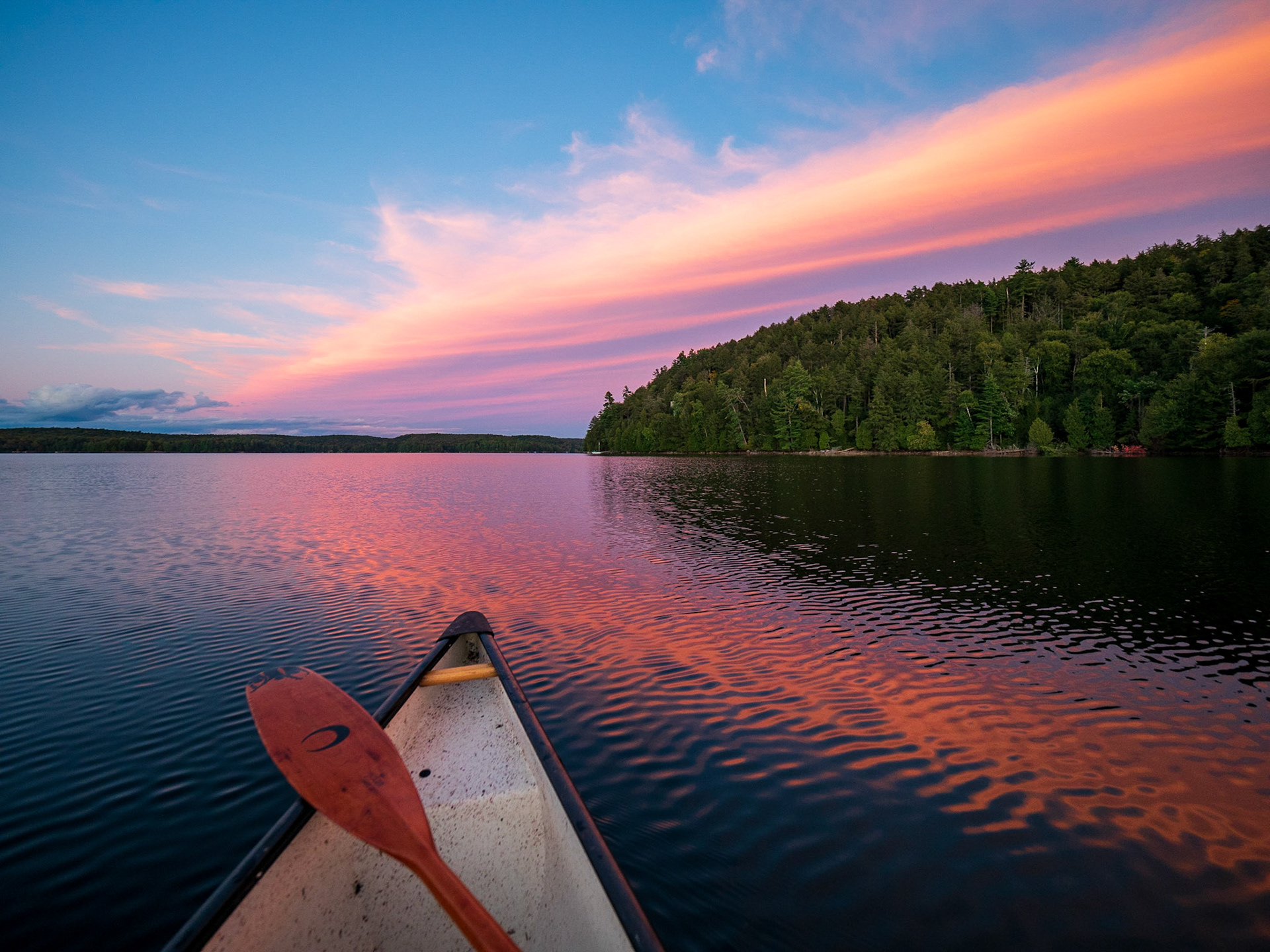 Kennisis Lake sunrise by Canoe, Haliburton, Ontario