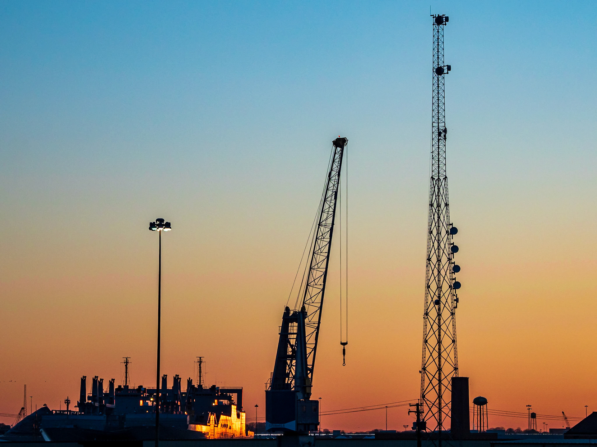 Sunset, cranes and bridges, Halifax, Nova Scotia