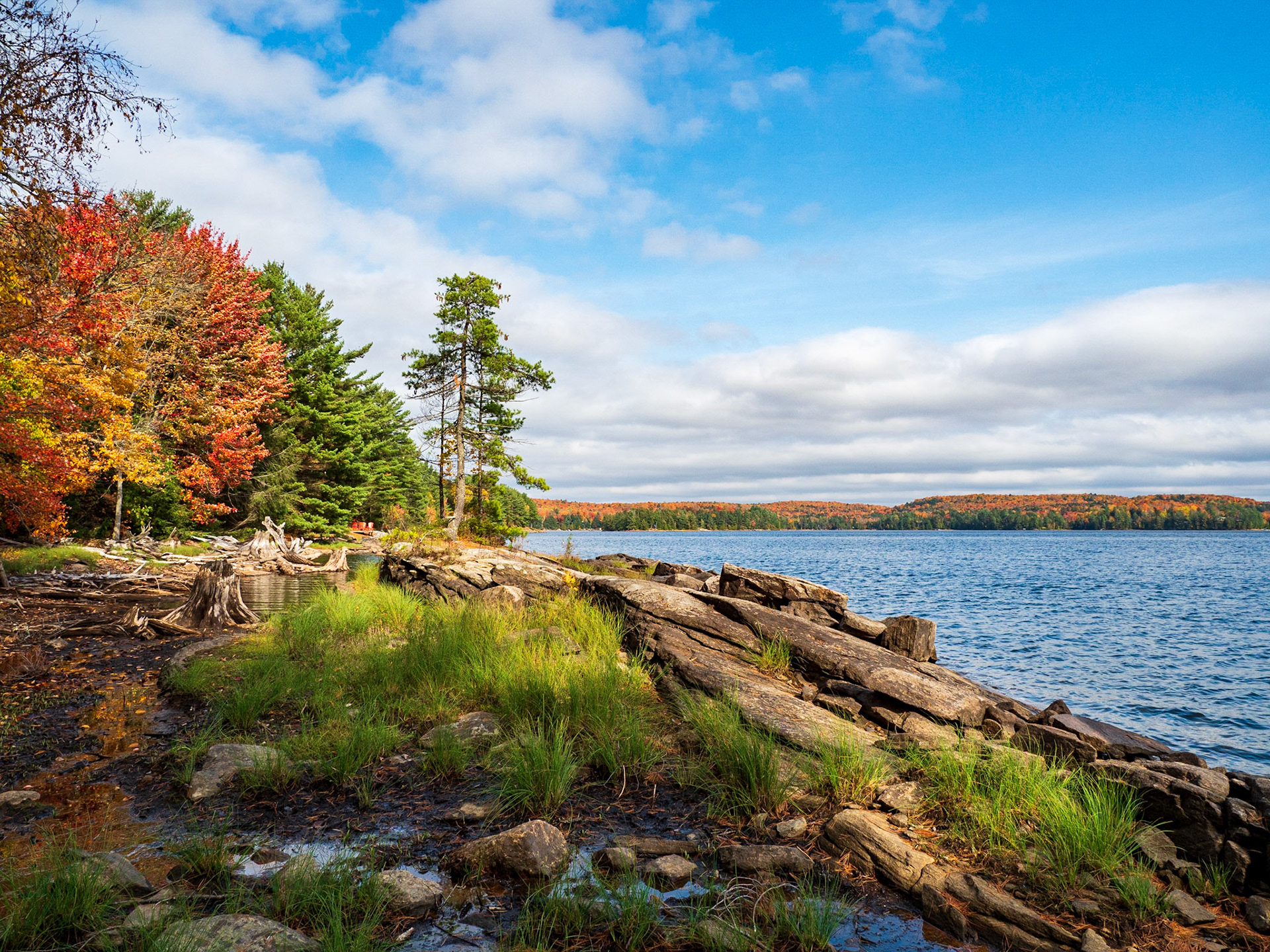 Coqui Island driftwood in the fall, Kennisis Lake, Haliburton, Ontario